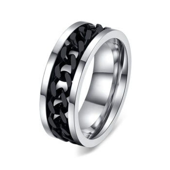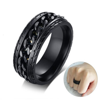 Rotatable Black Chain Rings for Men