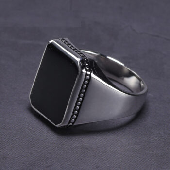 Square Steel Black Stone Titanium Ring for Men